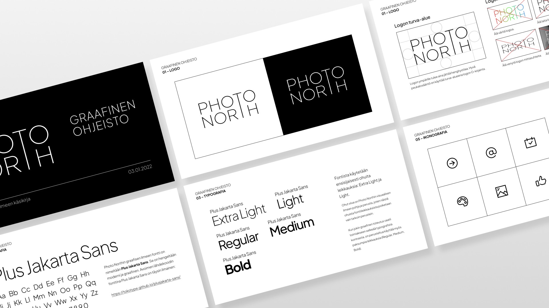Suunnittelin Photo Northin nettisivut, graafisen ohjeiston, julistepohjat ja käyntikortit.